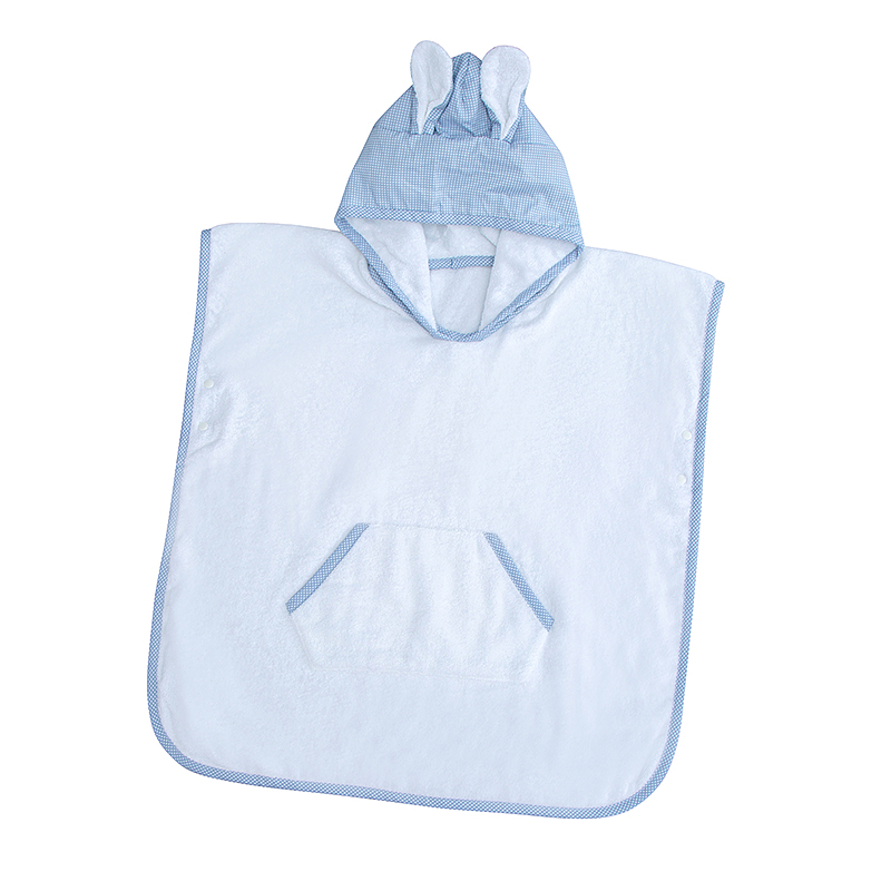 The poncho is trimmed with 100% cotton classic gingham fabric.
