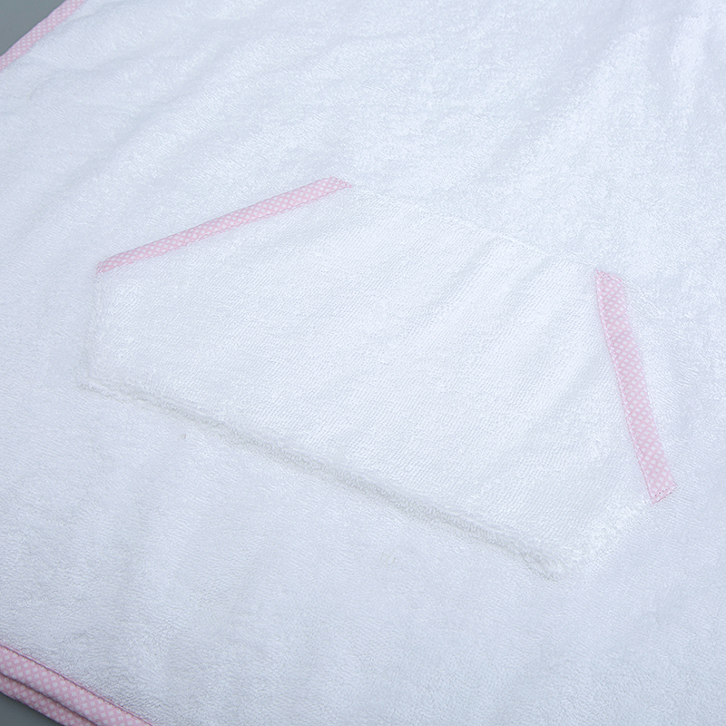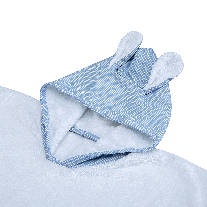 Our hooded bath poncho is made from premium cotton long loop terry fabric in 400gsm. The ideal weight makes our towel feel superemely soft and absorbent. It also warms baby up after bath shower.